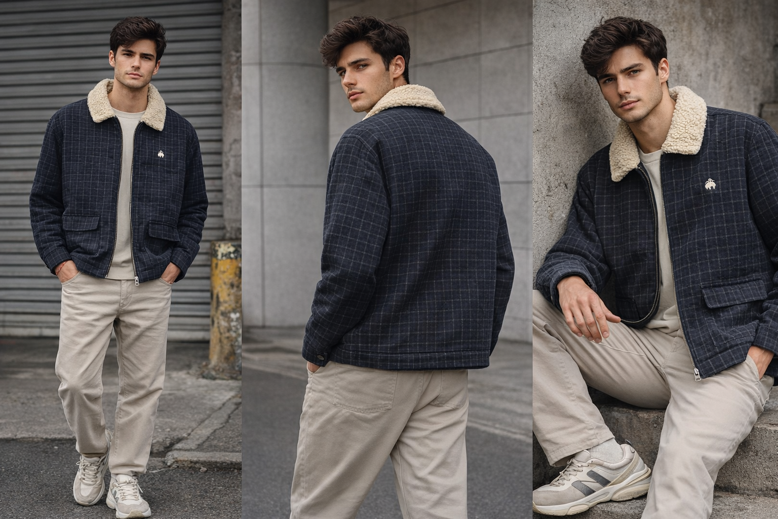 Make a sharp statement this season with our navy blue plaid jacket, designed for effortless everyday style and warmth. Crafted with a structured yet comfortable fabric, this jacket features a soft sherpa-lined collar that adds both insulation and a premium winter aesthetic.